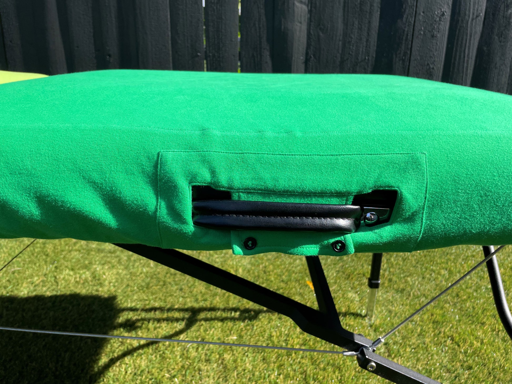 Fits most standard massage tables, 27"-32" wide. Stretch double knit accomodates multiple table sizes.